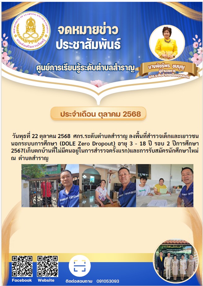 สำรวจเด็กและเยาวชนนอกระบบการศึกษา (DOLE Zero Dropout) อายุ 3 - 18 ปี รอบ 2 ปีการศึกษา 2567