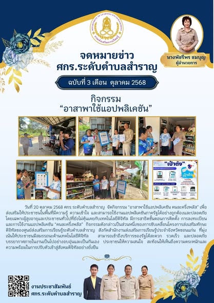 กิจกรรม “อาสาพาใช้แอปพลิเคชัน คนละครึ่งพลัส” เพื่อส่งเสริมให้ประชาชนในพื้นที่มีความรู้ ความเข้าใจ และสามารถใช้งานแอปพลิเคชันภาครัฐได้อย่างถูกต้องและปลอดภัย 25 / ต.ค. / 2568