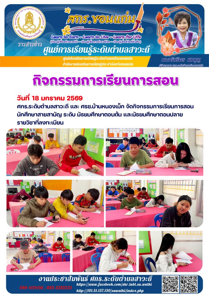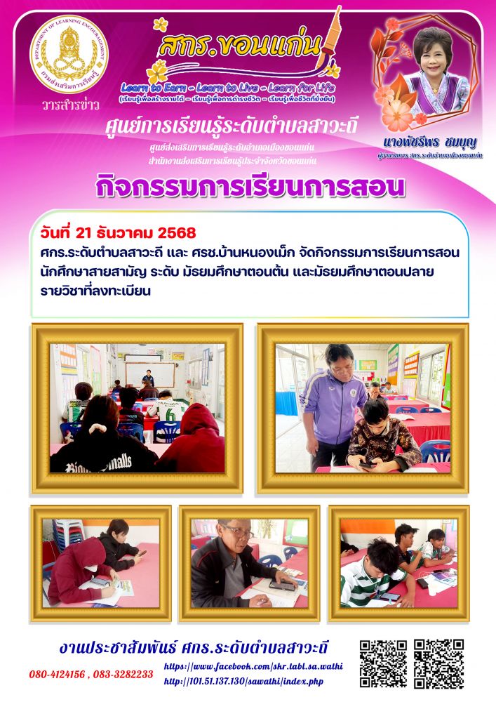 สมัครเรียน กศน.ตำบลสาวะถี : ติดต่อได้ตลอด 24 ชั่วโมง